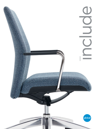 Includeâ„¢ features a kinetic, synchro-tilter mechanism that automatically adjusts to a person's weight, providing a fluid motion with the correct tension and balance. It is Global's first seating series for boardrooms, meeting rooms, and executive offices to offer this feature. The ergonomic back incorporates an articulating internal lumbar and back support structure, while maintaining a sleek profile and appearance. Mid back and high back models are available with or without arms.