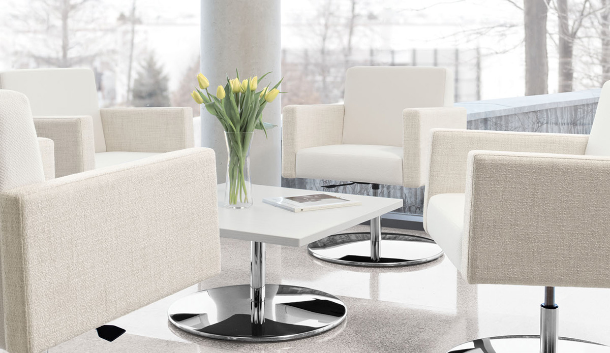 - The tailored box styling functions well in lounge, conferencing, collaboration and side/guest environments.